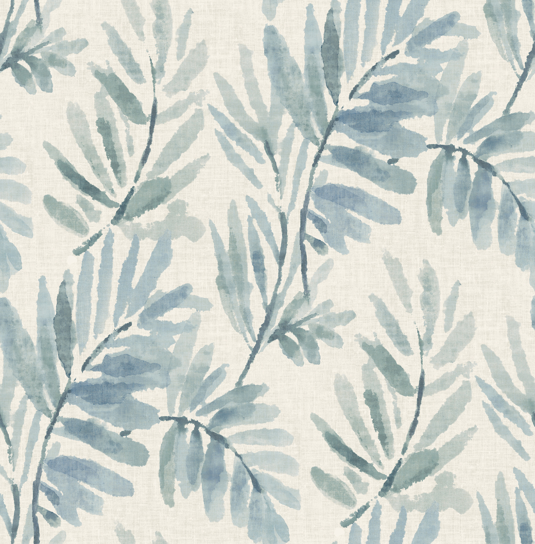 Airy ferns inked in soft watercolors along a linen-detailed backdrop infuse Serenade with the gentle serenity of the woods. Featured here in shades of blue against pale grey. Serenade is an unpasted, non woven wallpaper measuring 20.5 inches wide by 33 feet long, covering approximately 56.4 square feet per roll.