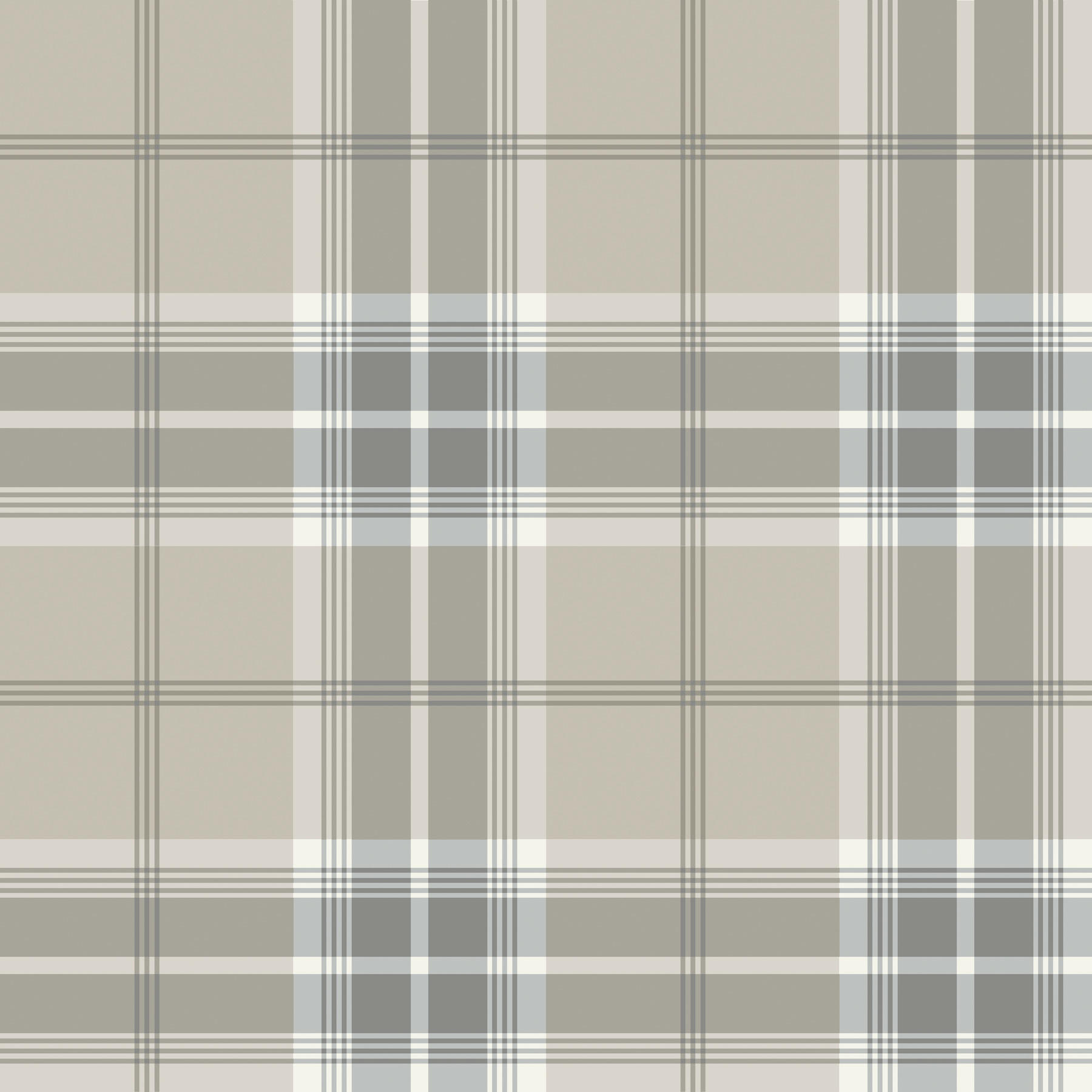 The elaborate overlapping of horizontal and vertical stripes creates a striking tartan design with timeless appeal. Featured here in shades of grey and taupe accented by steel blue. Emma is an unpasted, non woven wallpaper measuring 20.9 inches wide by 33 feet long, covering approximately 57.5 square feet per roll.