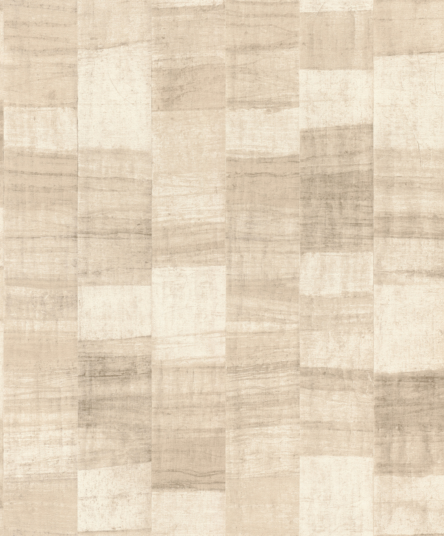 Variegated rectangles, woodgrain detailing, and offset stacking offers a modern take on checkerboard in this striped geometric. Featured here in white and grey. Ivo is an unpasted, vinyl wallpaper measuring 20.9 inches wide by 33 feet long, covering approximately 57.5 square feet per roll.